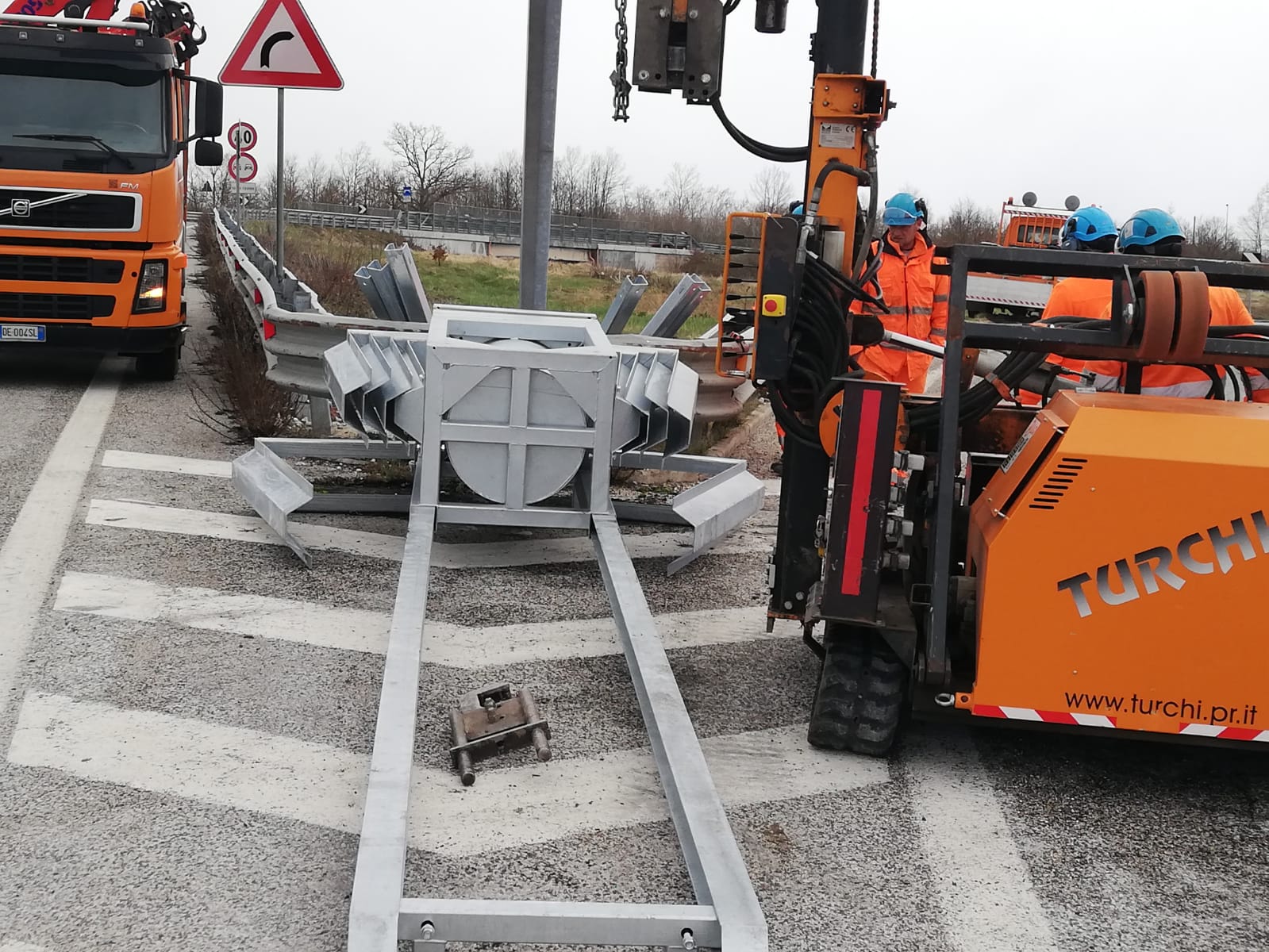 Attenuatore d'urto Classe 100 utilizzabile a protezione di cuspidi larghe su strade con limite di velocità maggiore o uguale a 130 km/h