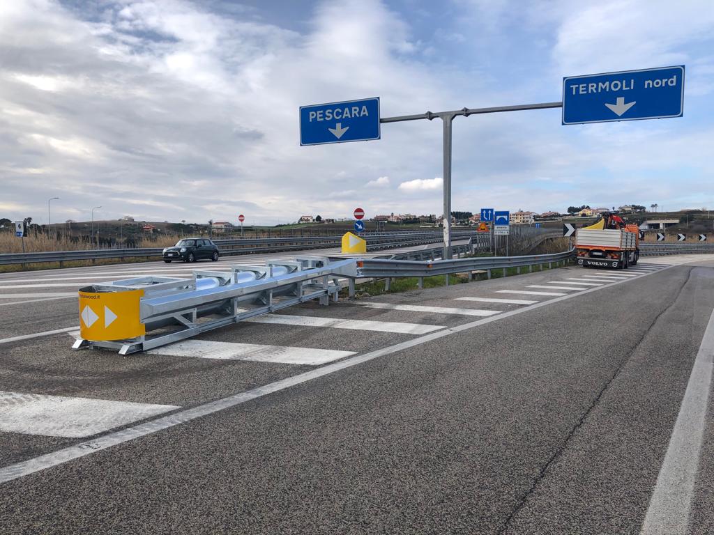 Attenuatore d'urto Classe 110 utilizzabile a protezione di cuspidi su strade con limite di velocità maggiore o uguale a 130 km/h