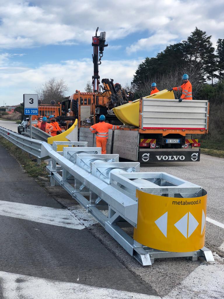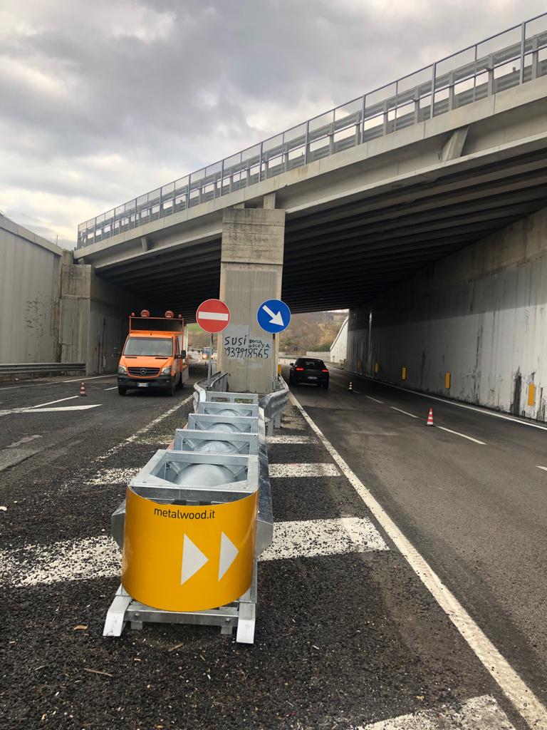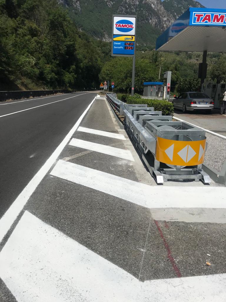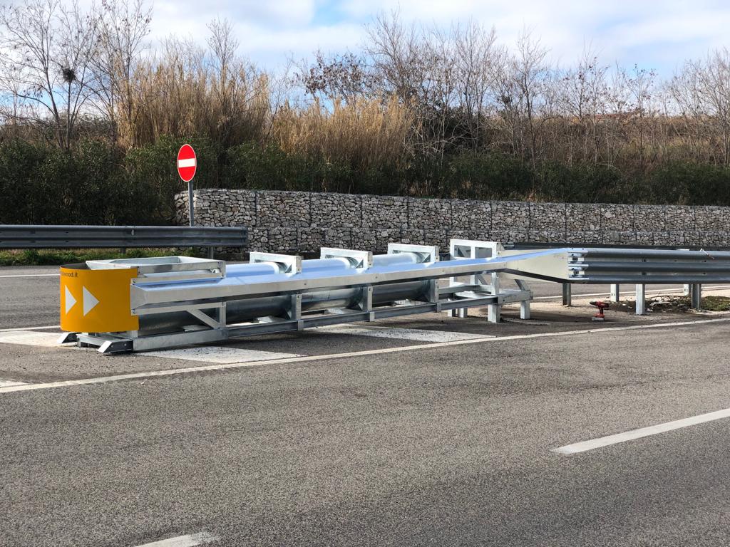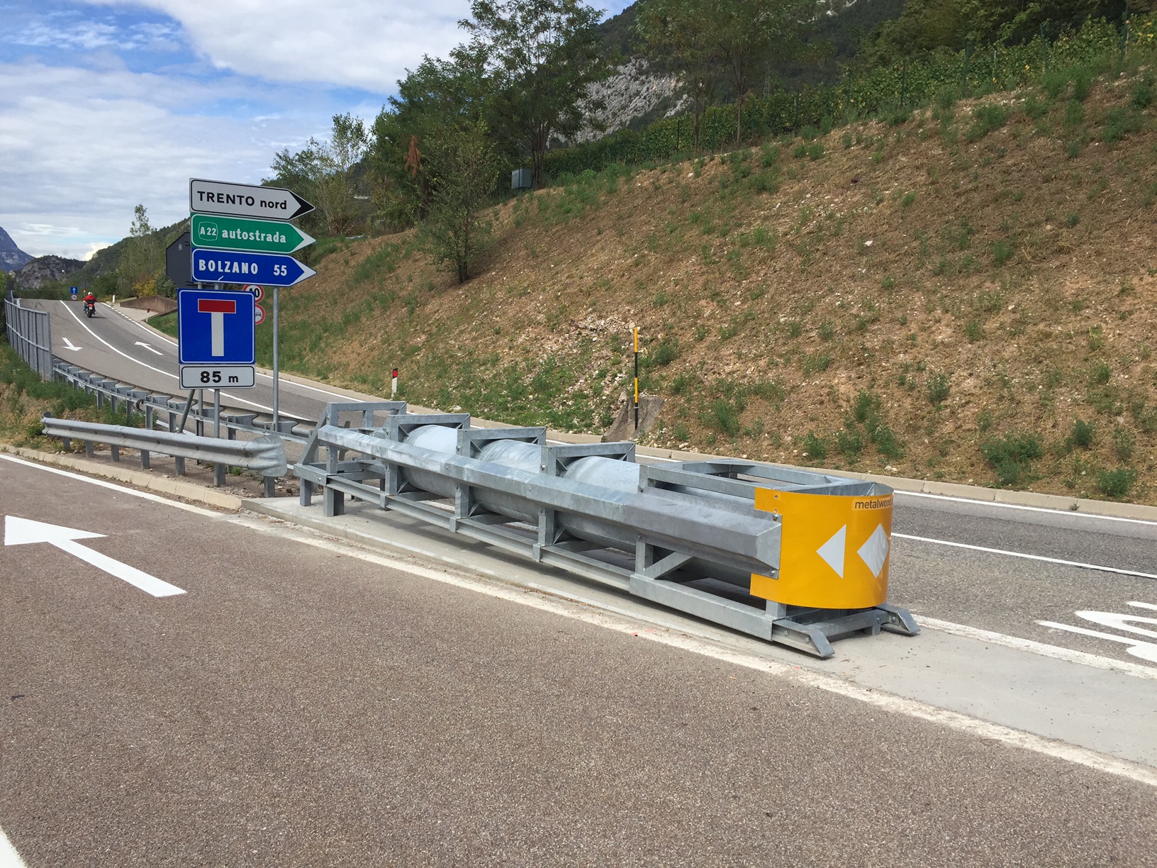 Attenuatore d'urto Classe 80 utilizzabile a protezione di cuspidi su strade con limite di velocità maggiore o uguale a 90 km/h e minore di 130 km/h